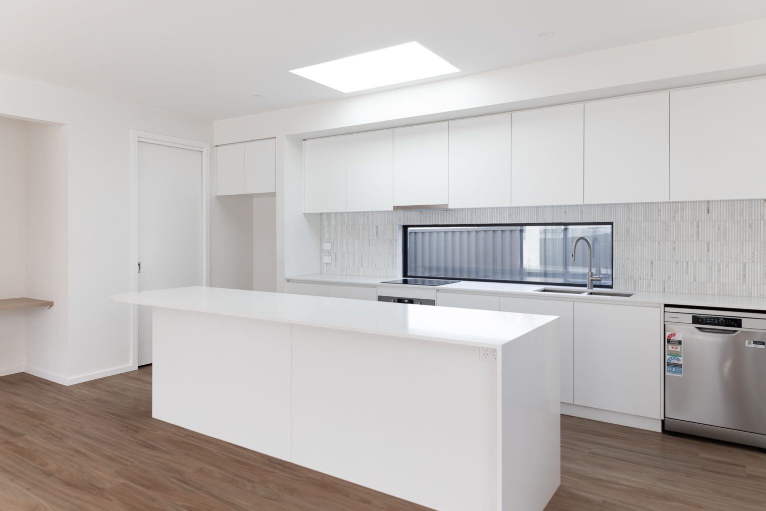 • 600×600 Tiled splashback to match flooring.