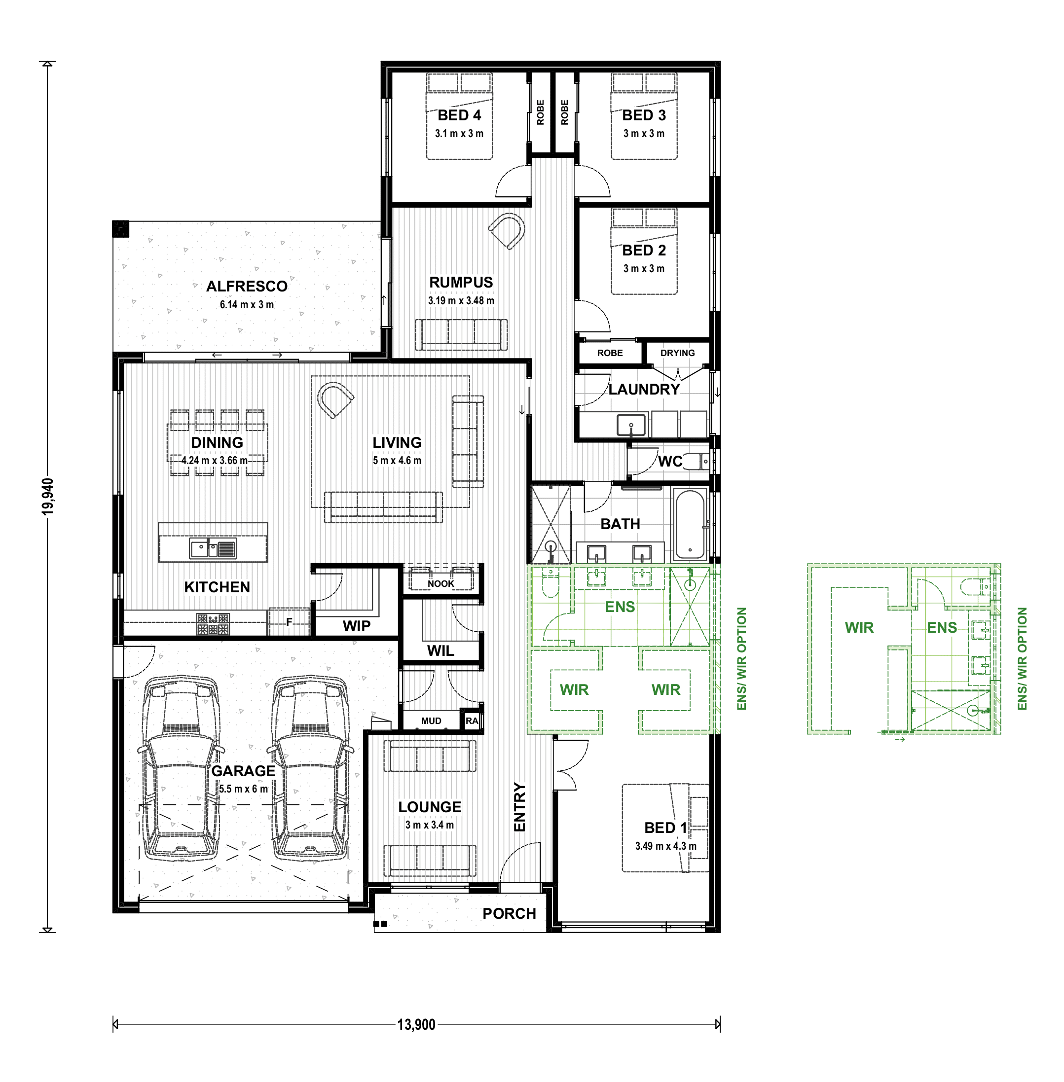 • Breathable wall wrap to all external framed walls, including garage.