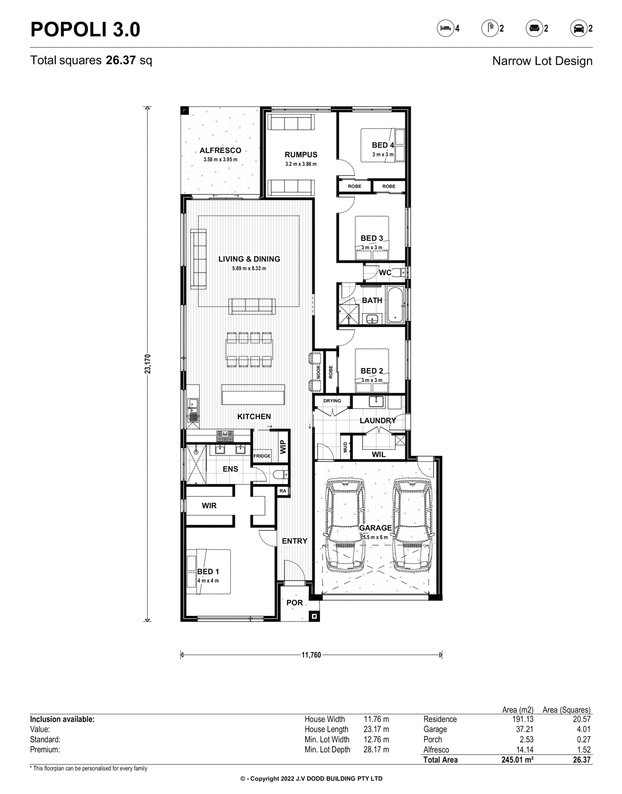 The Narrow Popoli 3.0 floor plan is a thoughtfully designed home that caters to modern family living while optimizing space on a narrow block.