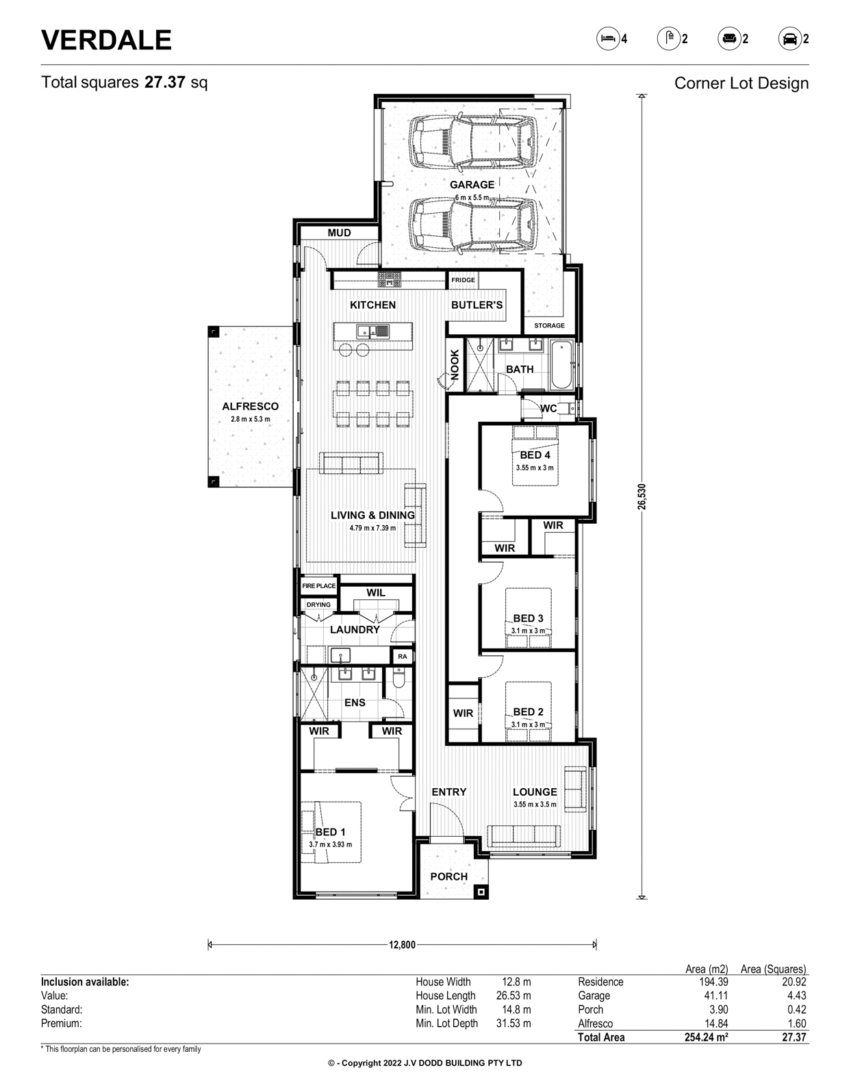 At JV Dodd we offer the flexibility to mix & match our standard and premium inclusions or provide fully customised options. We offer transparency through our costing stage to help our clients make informed decisions in bringing their home to life.