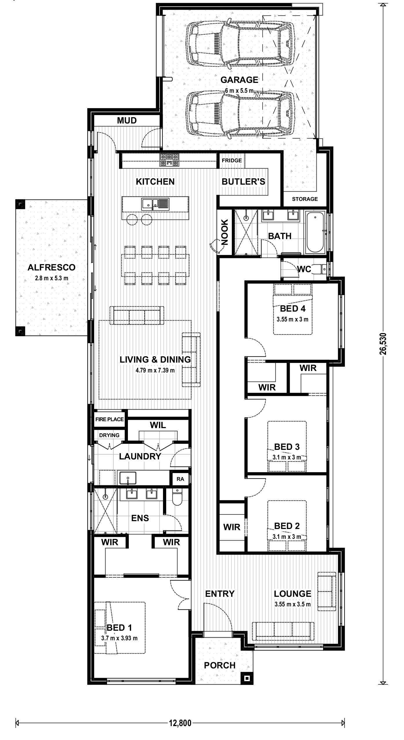 • 2550mm ceiling height with 75mm cove cornice to entire dwelling, including garage.